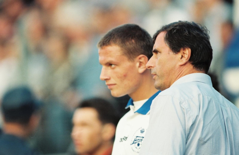 Описание: 1997 год. Россия. Санкт-Петербург. «Петровский». На снимке: футболист ФК «Зенит» Константин Дымарчук и главный тренер ФК «Зенит» Анатолий Бышовец.