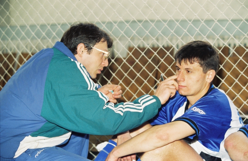 Описание: На снимке: врач ФК «Зенит» Валерий Редкобородов(слева), футболист ФК «Зенит» Владимир Попов