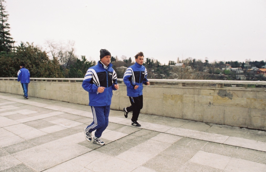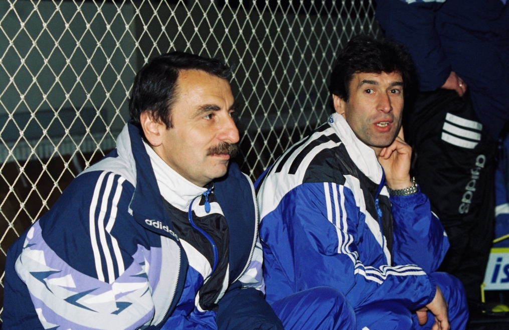 Описание: Февраль 1997 года. Россия. Санкт-Петербург. ДСИ на ул.Бутлерова. Товарищеский матч «Зенит» (Санкт-Петербург) — «Локомотив» (Санкт-Петербург). На фото: тренеры ФК «Зенит» Леонид Колтун и Анатолий Давыдов.