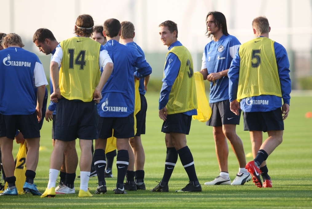Описание: Тренировка футболистов петербургского «„Зенита“» на первом предсезонном сборе в Объединённые Арабские Эмираты. День первый. На снимке: нападающий Фатих Текке