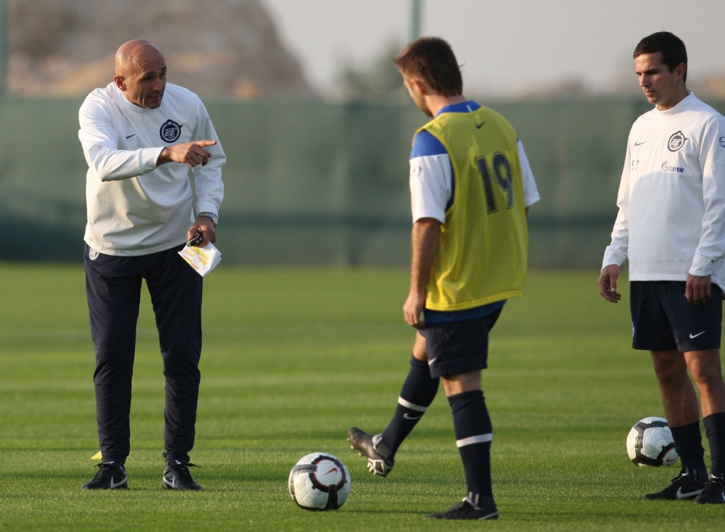 Описание: Тренировка футболистов петербургского «„Зенита“» на первом предсезонном сборе в Объединённые Арабские Эмираты. День первый. На снимке: главный тренер Лучано Спаллетти и тренер Игорь Симутенков
