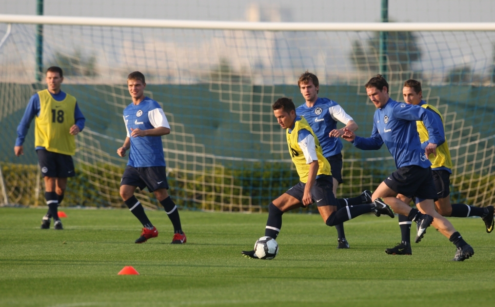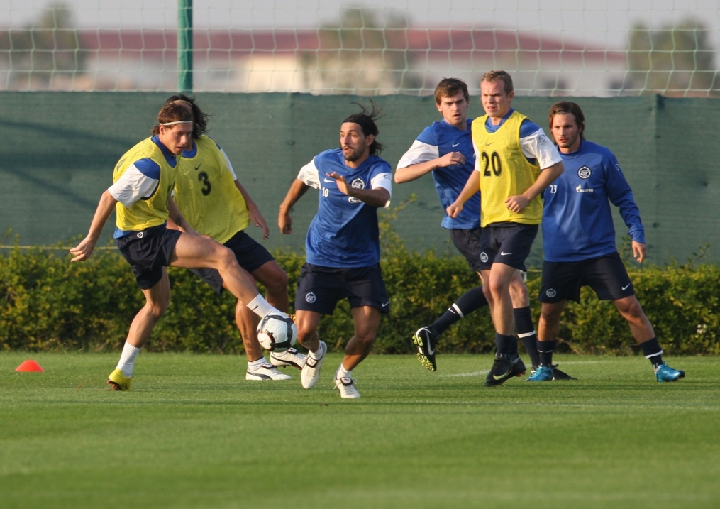 Описание: Тренировка футболистов петербургского «„Зенита“» на первом предсезонном сборе в Объединённые Арабские Эмираты. День первый.