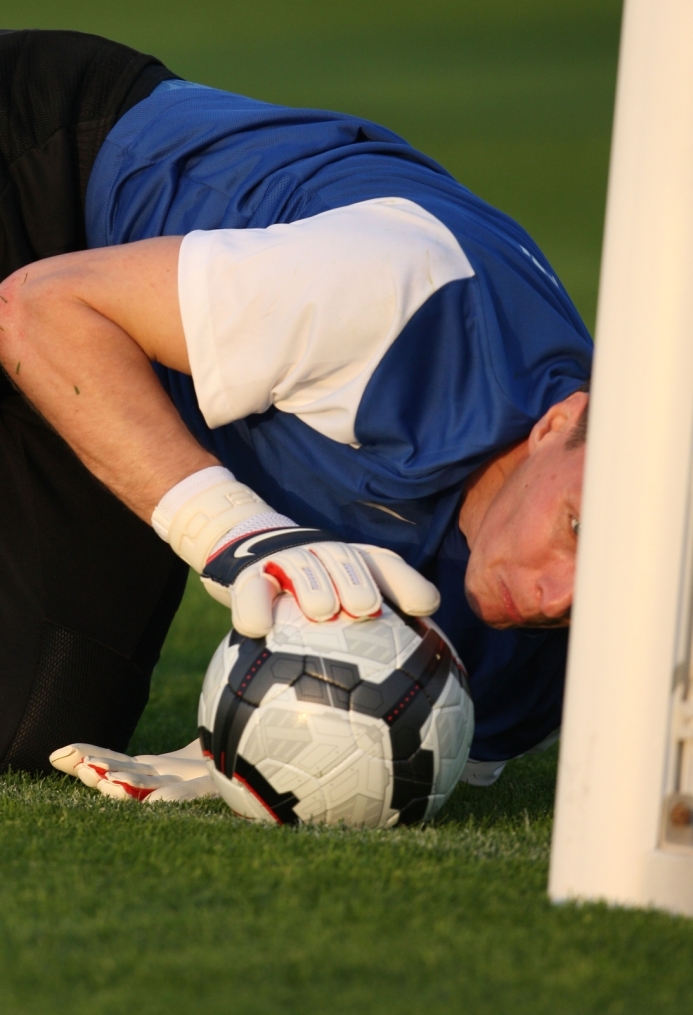 Описание: Тренировка футболистов петербургского «„Зенита“» на первом предсезонном сборе в Объединённые Арабские Эмираты. День первый. На снимке: вратарь Вячеслав Малафеев