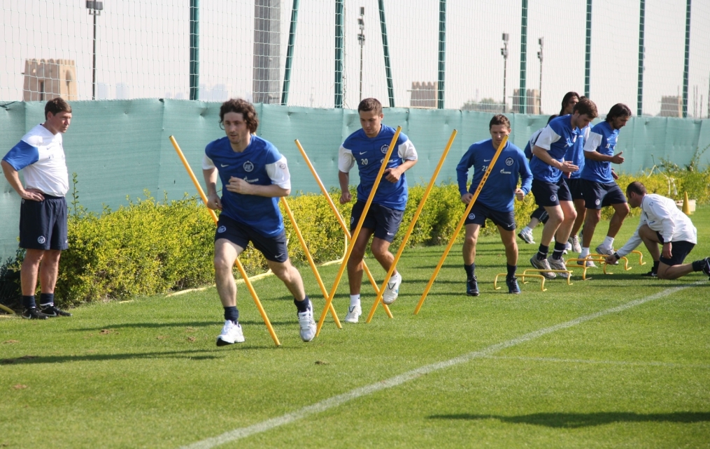 Описание: Тренировка футболистов петербургского «„Зенита“» на первом предсезонном сборе в Объединённые Арабские Эмираты. День второй.