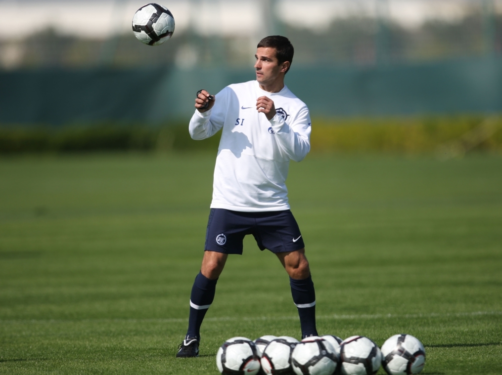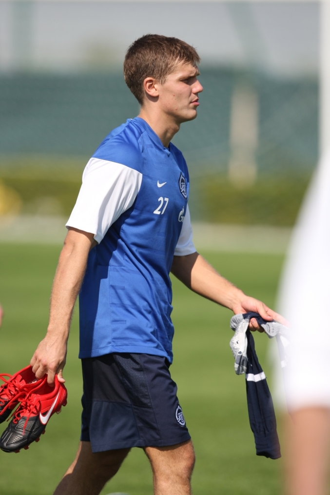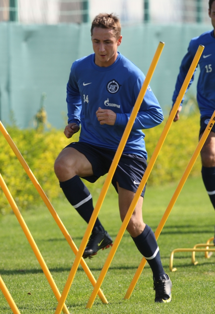 Описание: Тренировка футболистов петербургского «„Зенита“» на первом предсезонном сборе в Объединённые Арабские Эмираты. День второй. На снимке: полузащитник Роман Широков