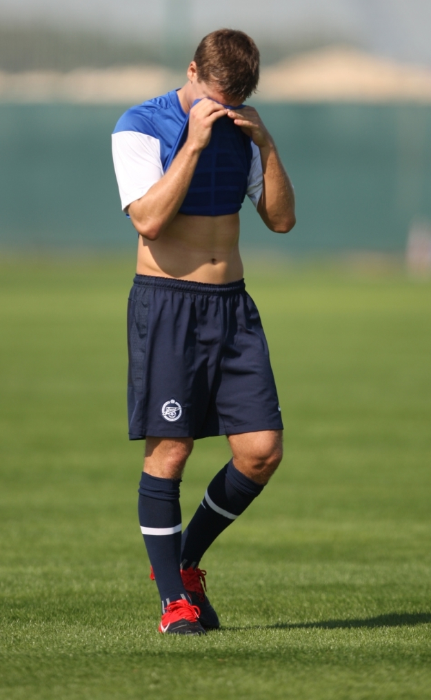 Описание: Тренировка футболистов петербургского «„Зенита“» на первом предсезонном сборе в Объединённые Арабские Эмираты. День второй. На снимке: полузащитник Игорь Денисов