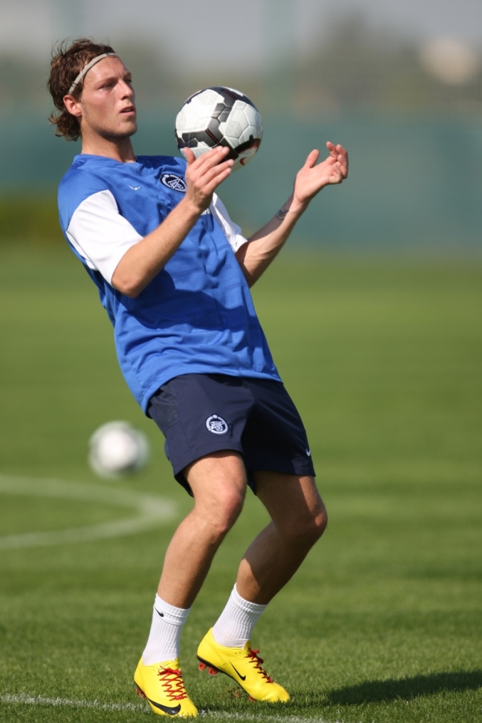 Описание: Тренировка футболистов петербургского «„Зенита“» на первом предсезонном сборе в Объединённые Арабские Эмираты. День второй. На снимке: защитник Микаель Ламб