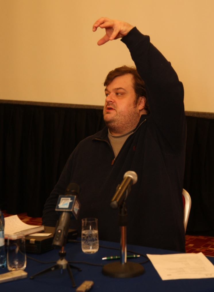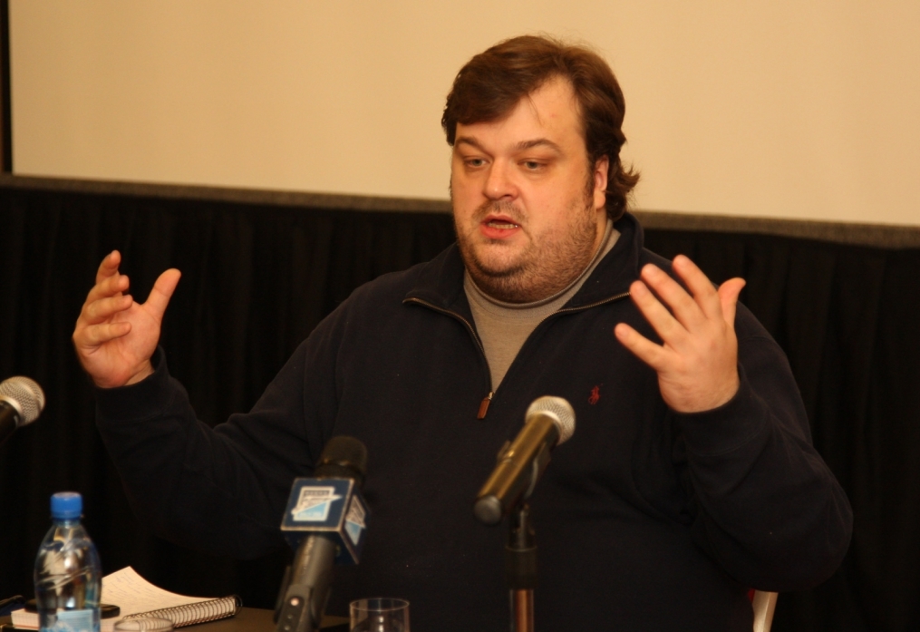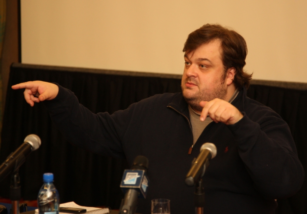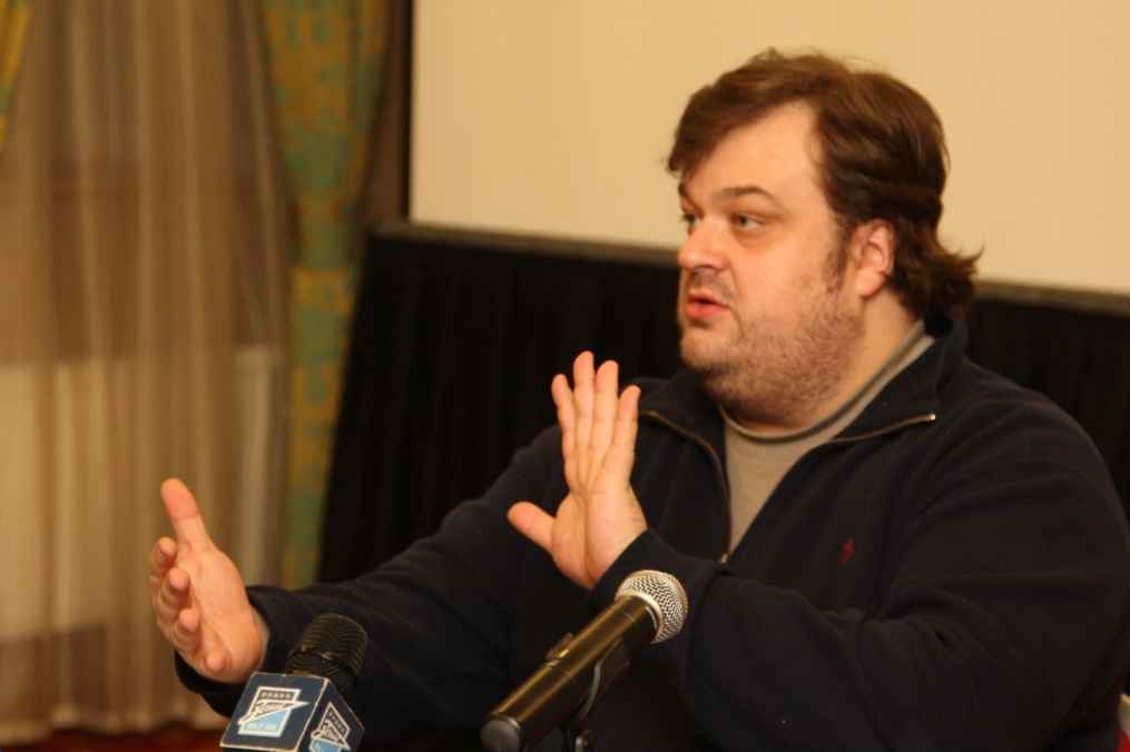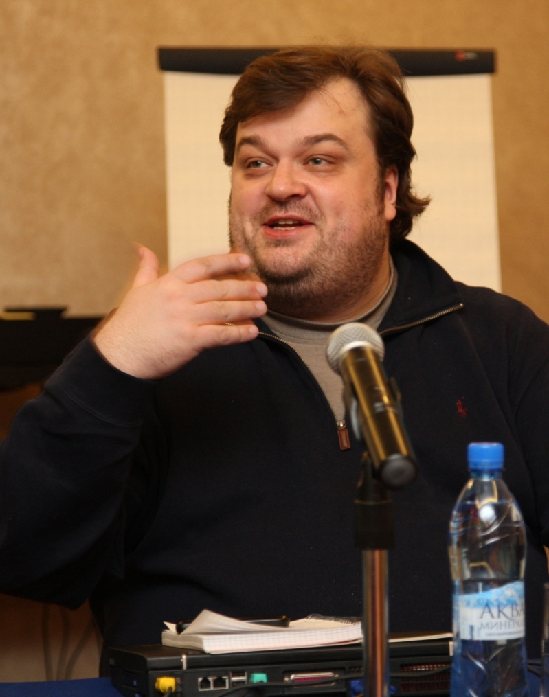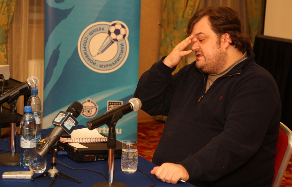Описание: Футбольный Клуб «Зенит» проводит цикл семинаров для начинающих спортивных журналистов. На снимке: лекция автор программы «Футбольный клуб», комментатора телеканала НТВ+ Василия Уткина